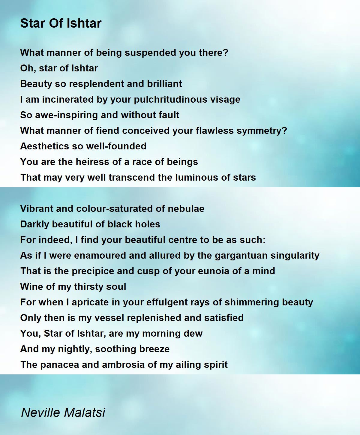 You, Star of Ishtar, are my morning dew