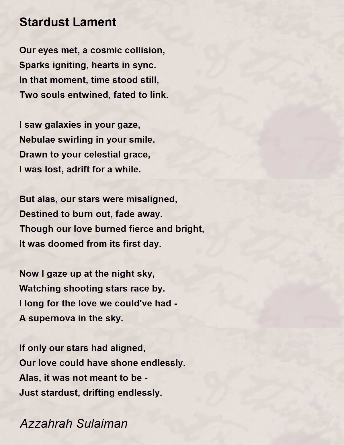 Just stardust, drifting endlessly.