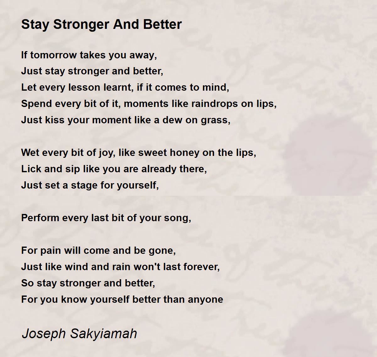 Stay Stronger And Better Poem by Joseph Sakyiamah