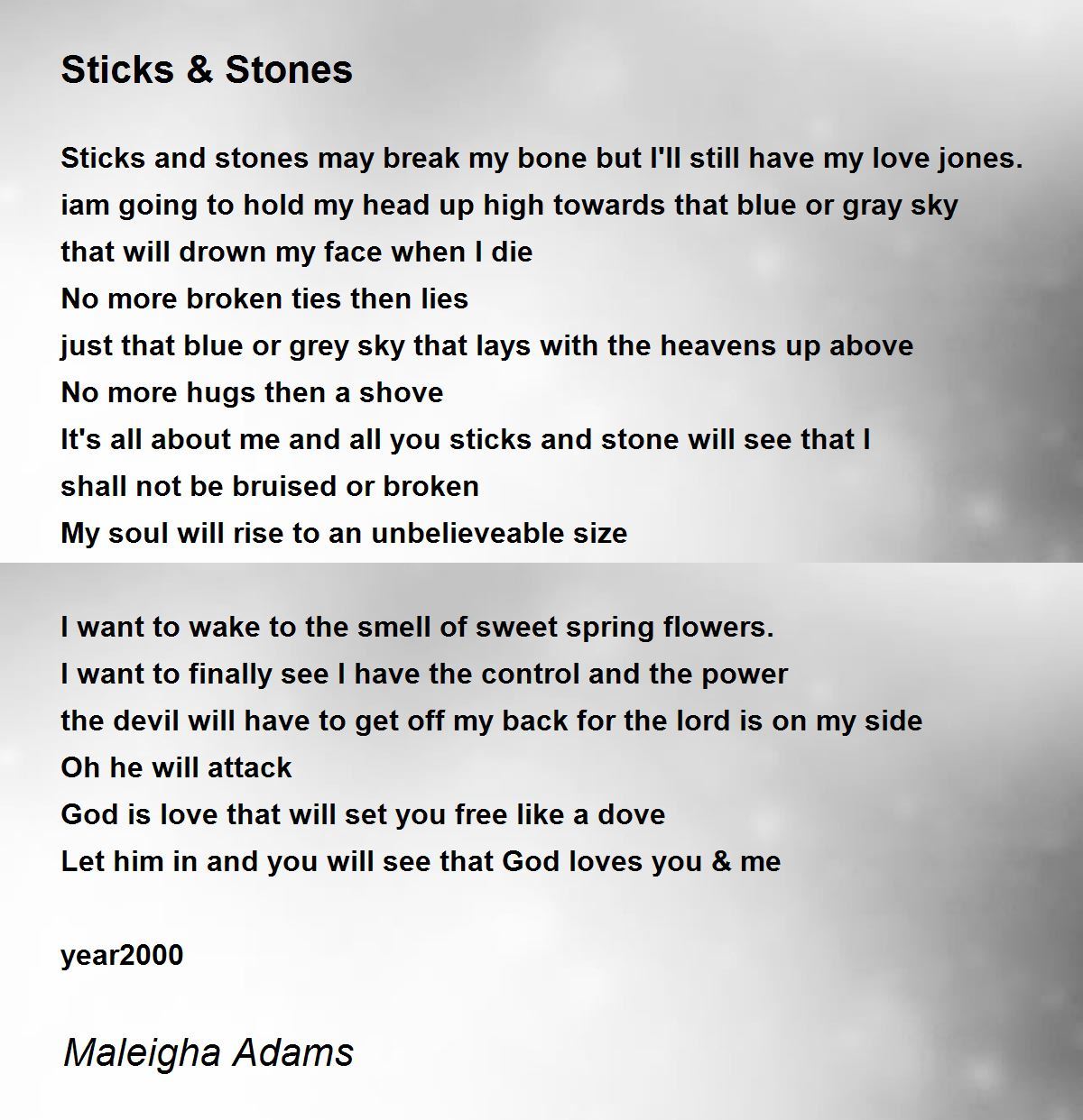 Sticks and stones may break my bone but I'll still have my love jones.