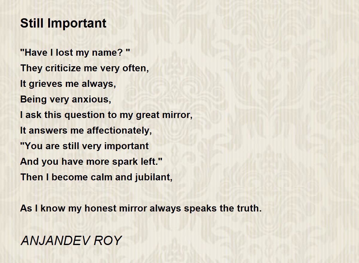 Self image is always an important log To accomplish things that are meant to be yours. World around destined to through stones But I have to make a way through the fog. Admirations.