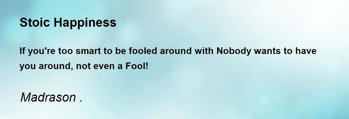If you're too smart to be fooled around with Nobody wants to have you around, not even a Fool!