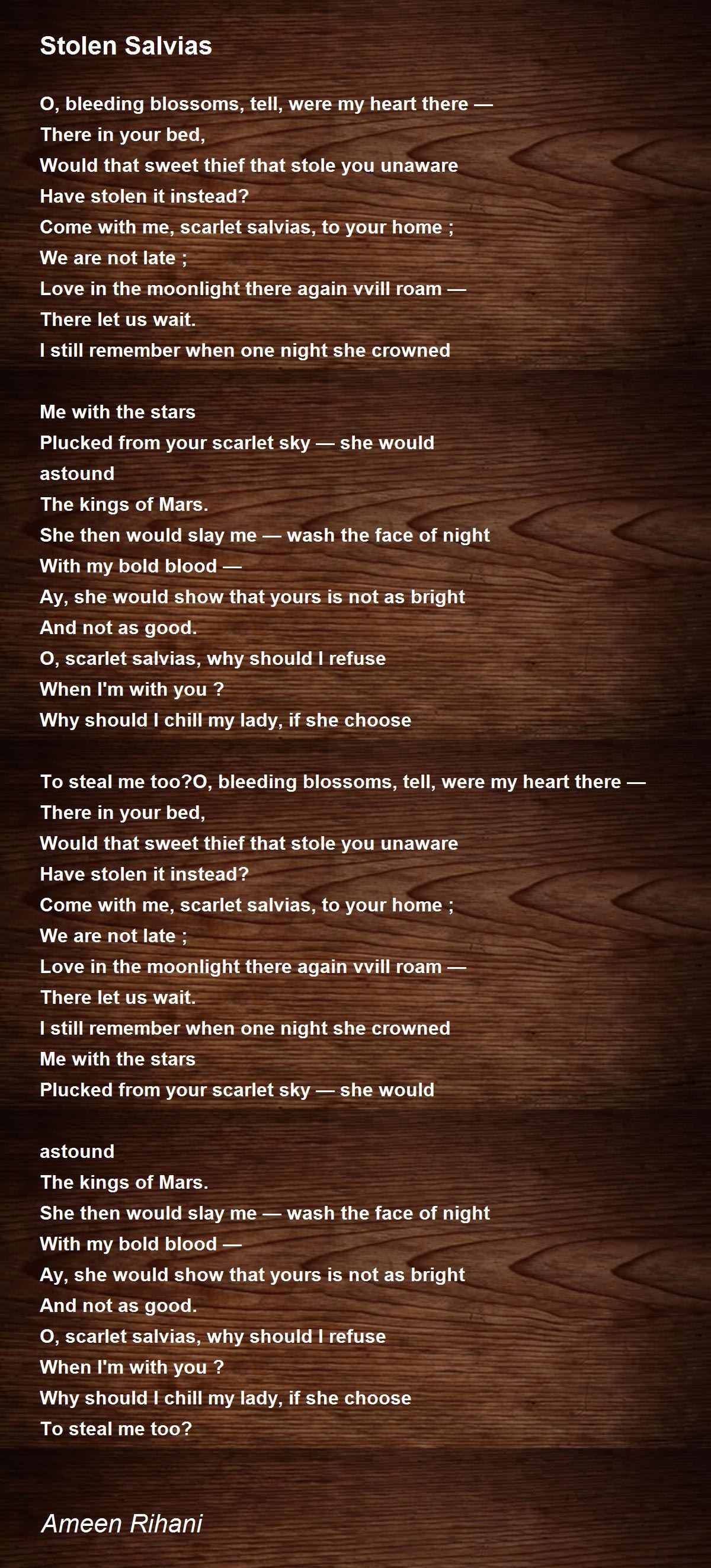 To steal me too?O, bleeding blossoms, tell, were my heart there —