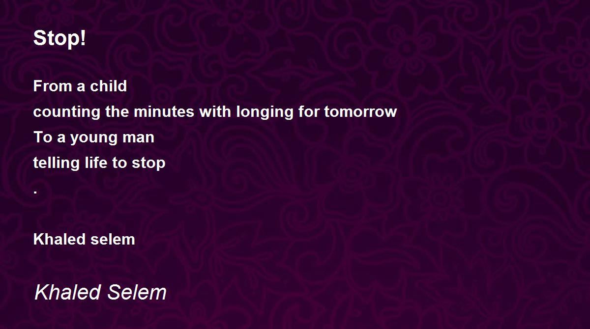 From a child counting the minutes with longing for tomorrow To a young man telling life to stop . Khaled selem