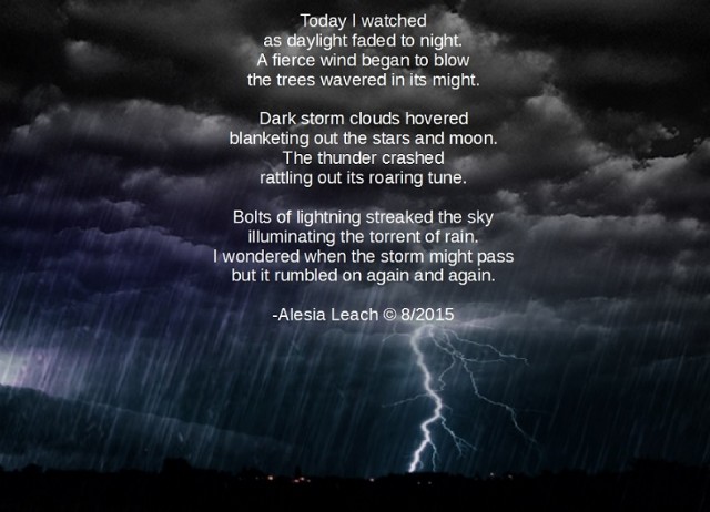 The words are so powerful and the impact is so profound that the reader virtually feels the ferocity of a real storm. This is now a favourite poem.