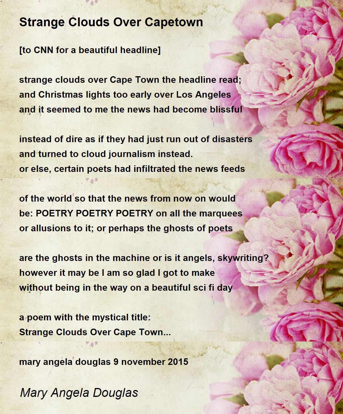 strange clouds over Cape Town the headline read;