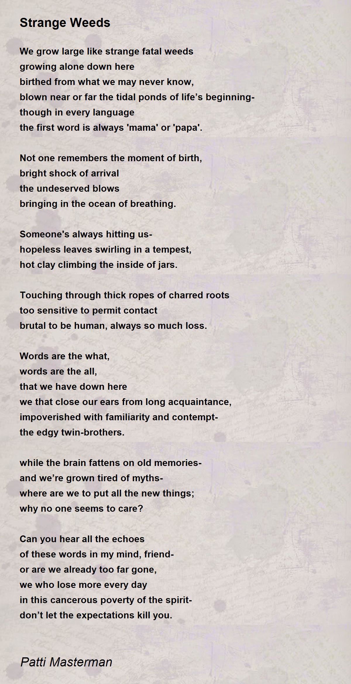 We grow large like strange fatal weeds