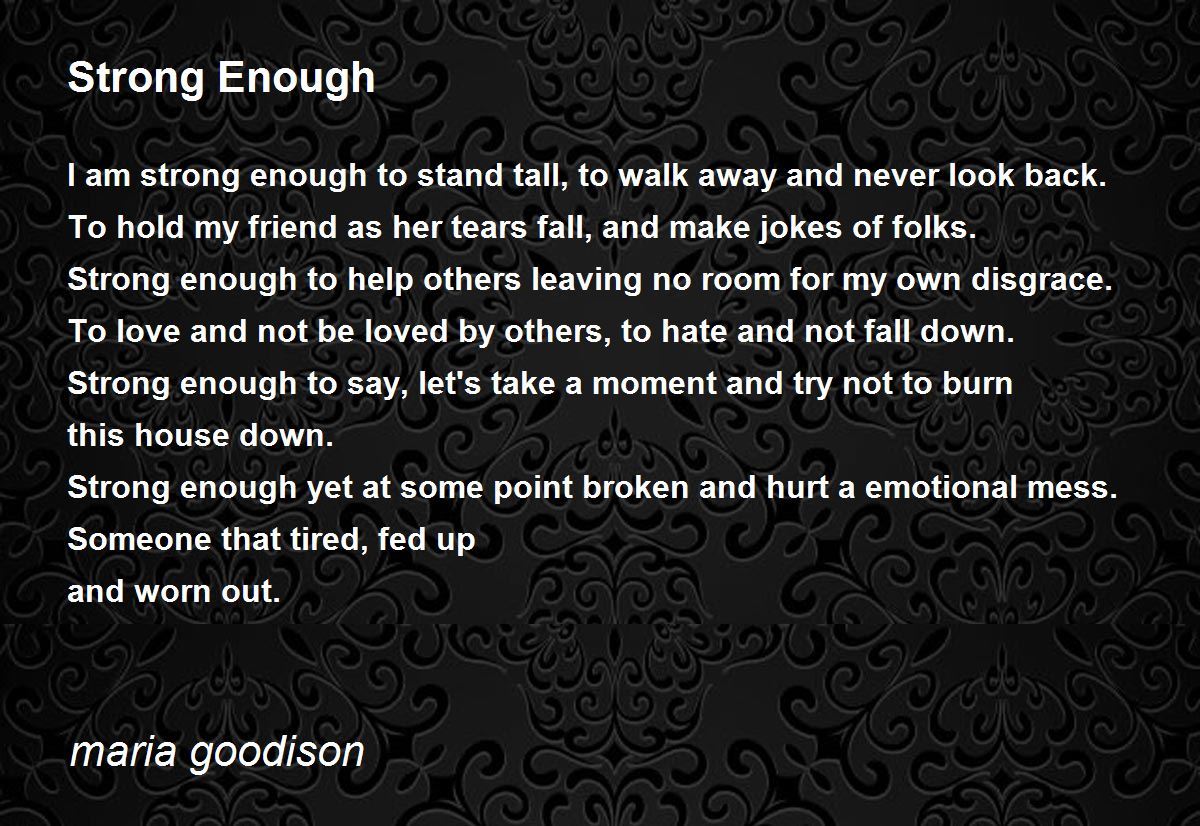 Strong enough yet at some point broken and hurt a emotional mess.