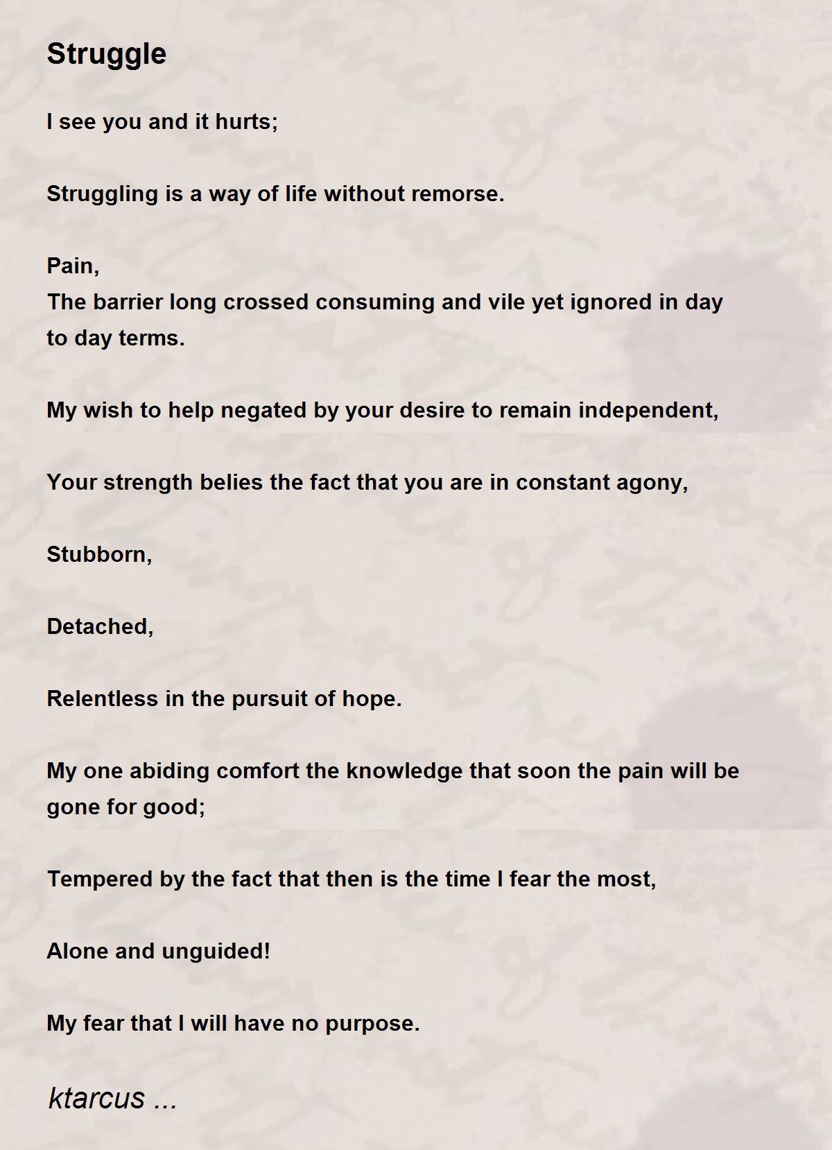 Struggling is a way of life without remorse.