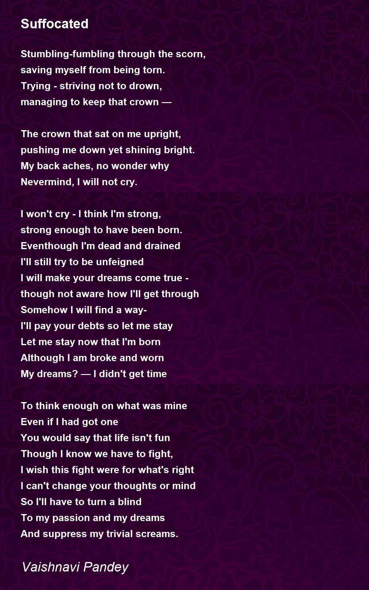And suppress my trivial screams.