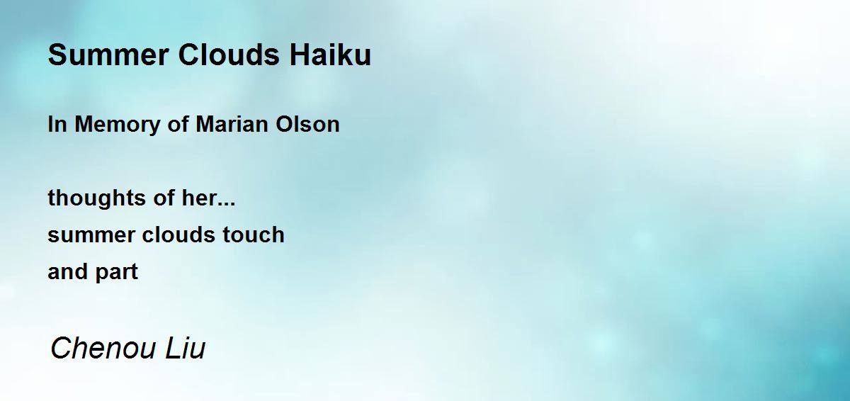 In Memory of Marian Olson thoughts of her... summer clouds touch and part