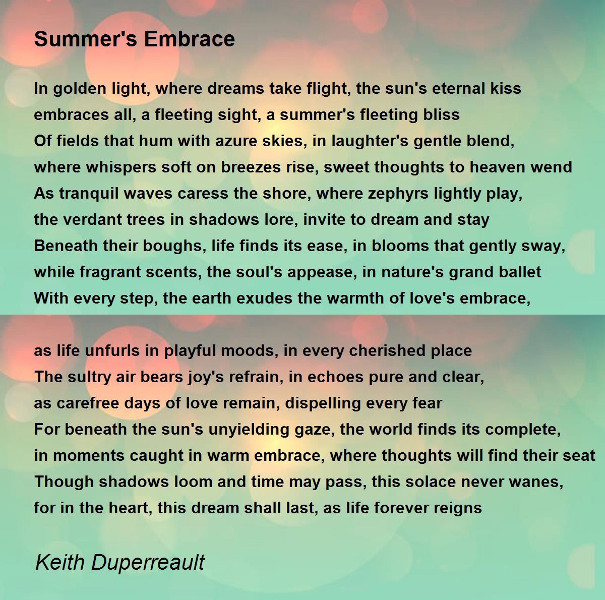 embraces all, a fleeting sight, a summer's fleeting bliss