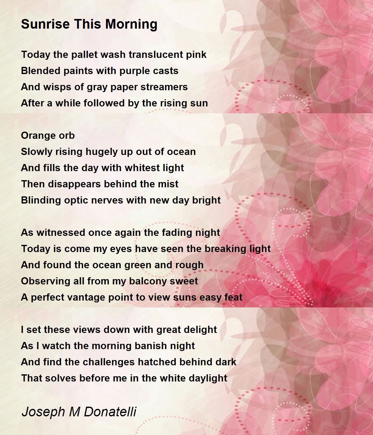 As I watch the morning banish night