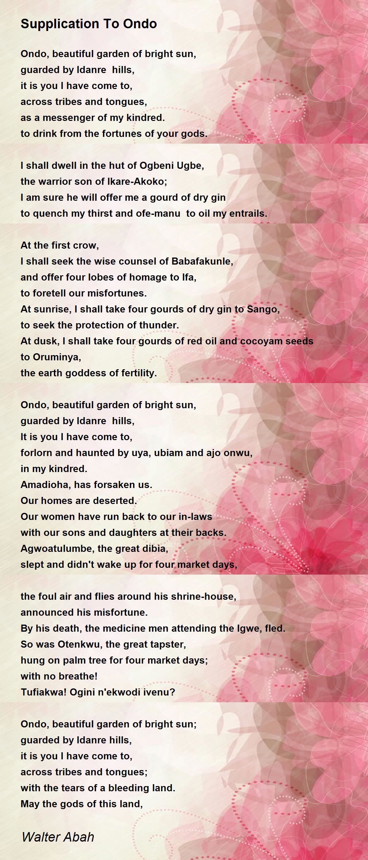 At sunrise, I shall take four gourds of dry gin to Sango,
