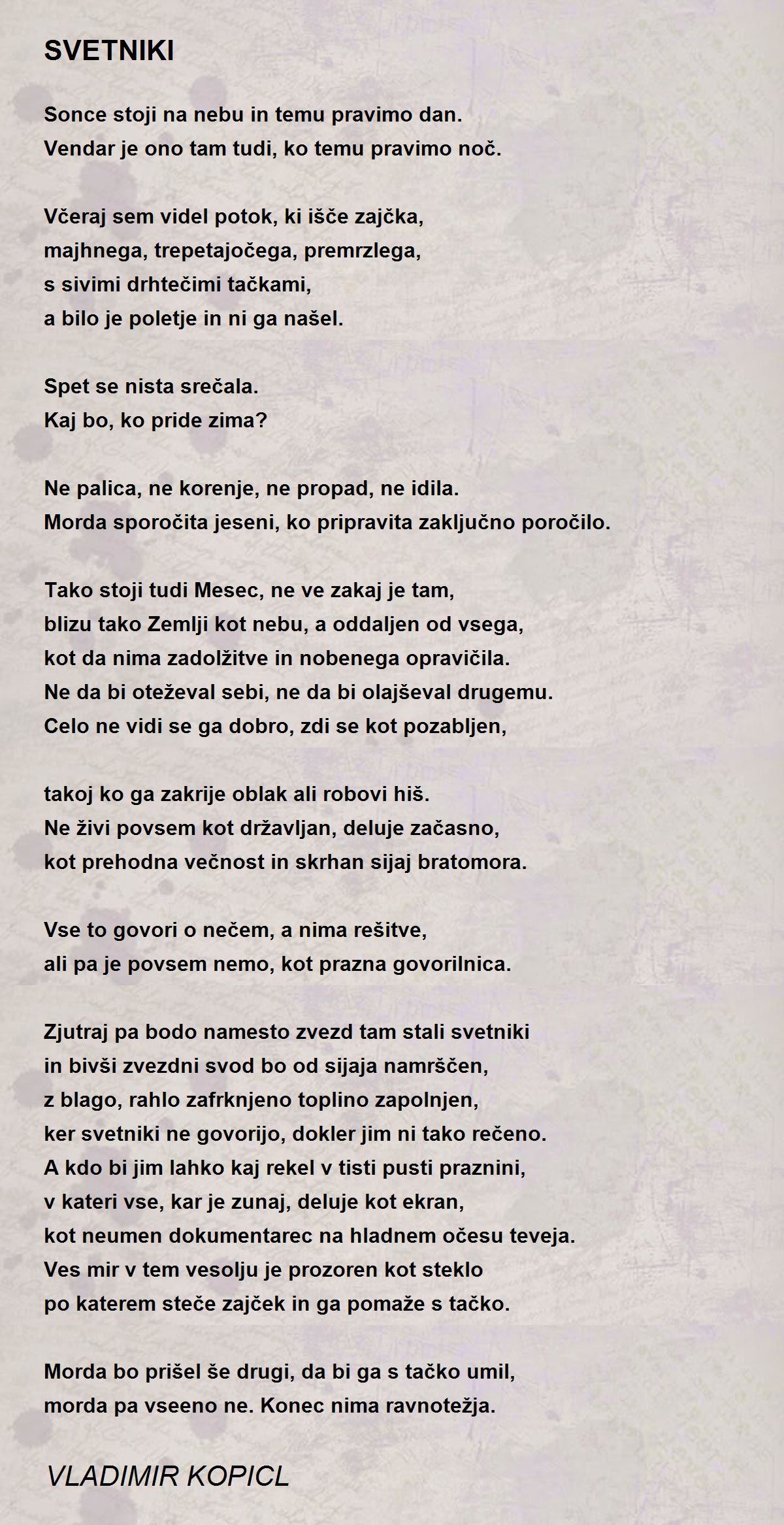 Tako stoji tudi Mesec, ne ve zakaj je tam,