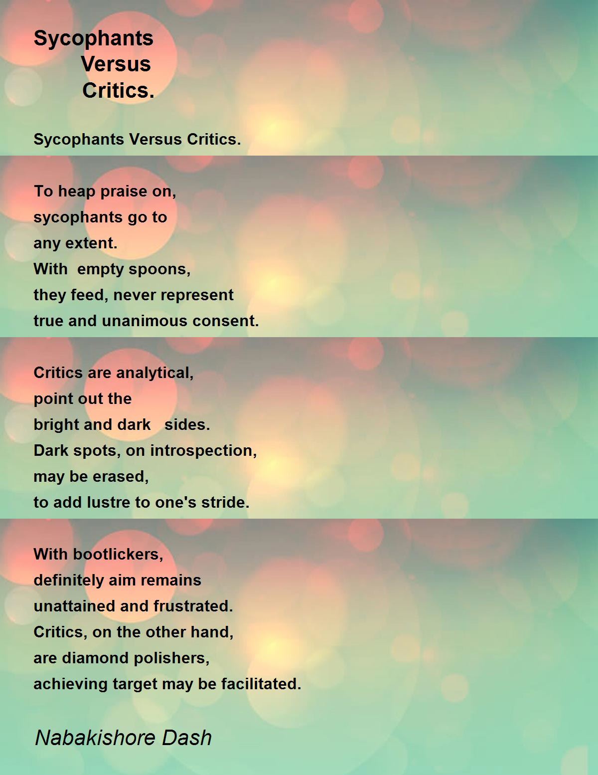 A perceptive poem. I go with critics. They can contribute to the betterment of society. Well presented.