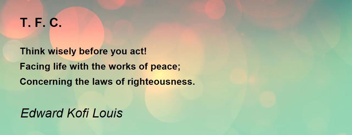 Think wisely before you act! Facing life with the works of peace; Concerning the laws of righteousness.