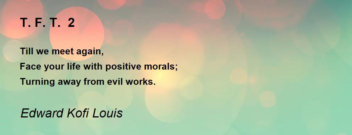Till we meet again, Face your life with positive morals; Turning away from evil works.