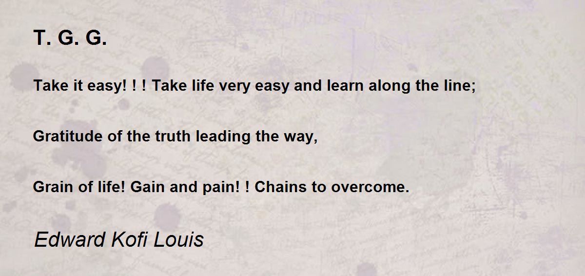 Take it easy! ! ! Take life very easy and learn along the line; .......nice saying. Beautiful poem. Thanks for sharing.