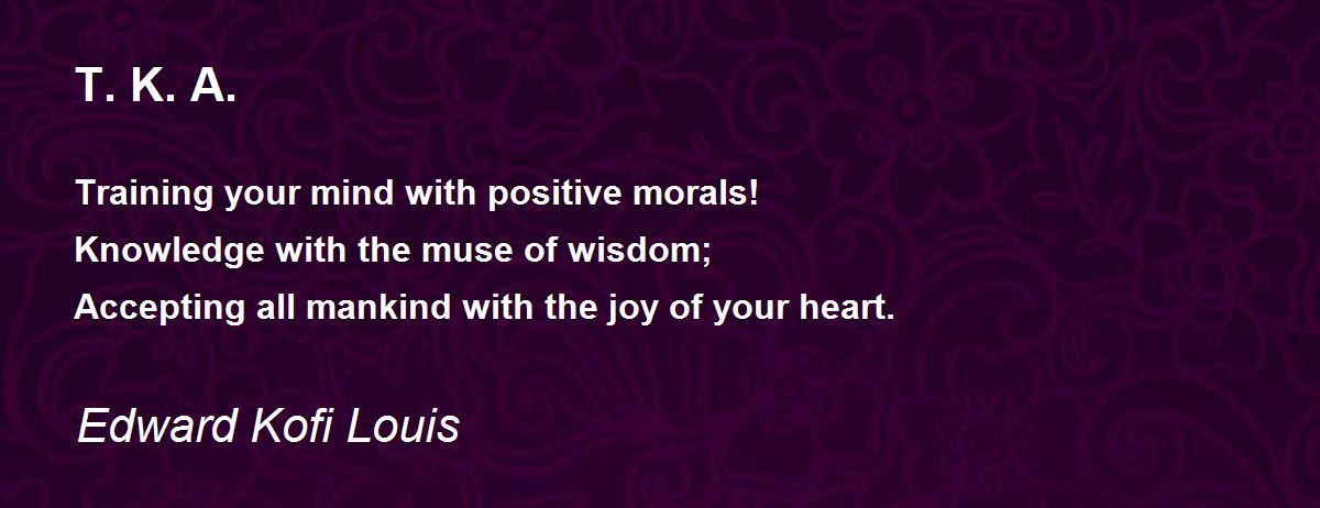 Training your mind with positive morals! Knowledge with the muse of wisdom; Accepting all mankind with the joy of your heart.