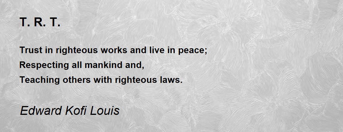 Trust in righteous works and live in peace; Respecting all mankind and, Teaching others with righteous laws.