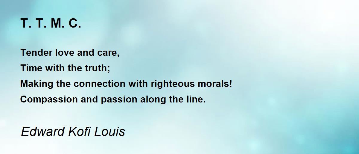 Tender love and care, Time with the truth; Making the connection with righteous morals! Compassion and passion along the line.