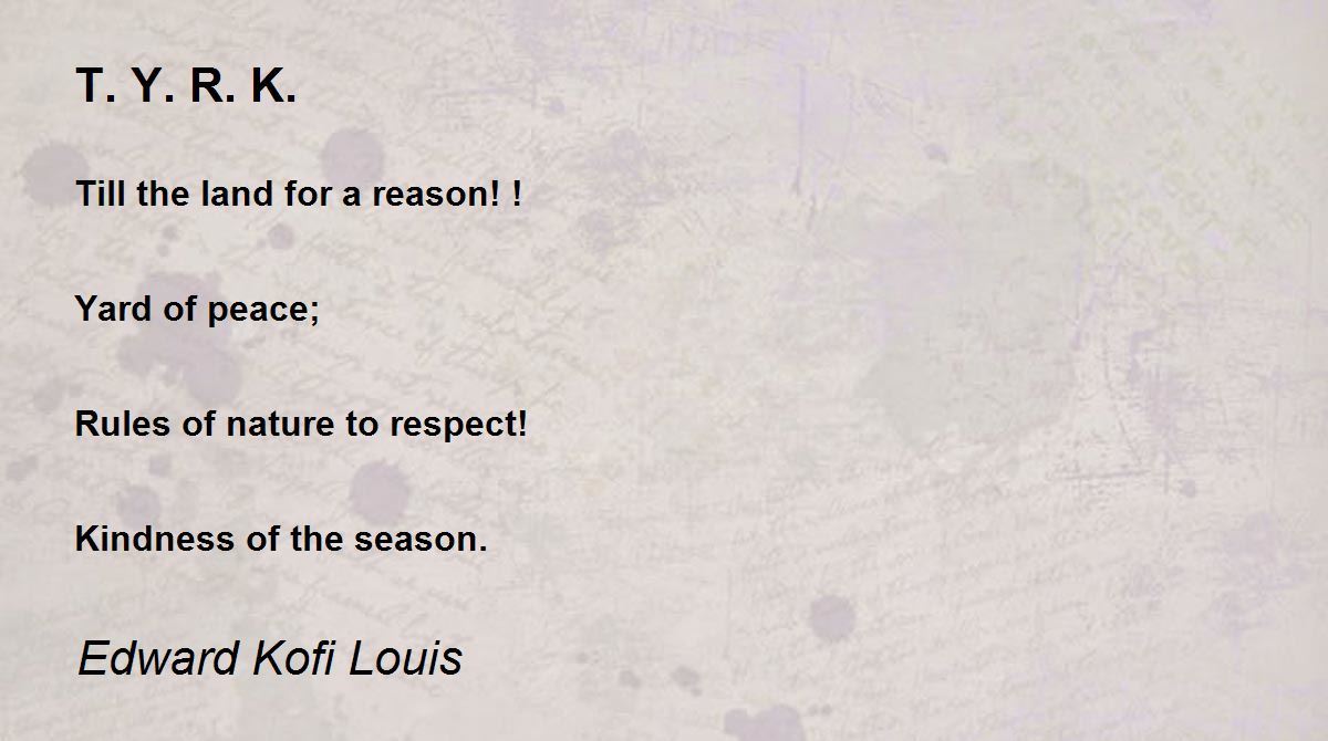 Till the land for a reason! ! Yard of peace; Rules of nature to respect! Kindness of the season.