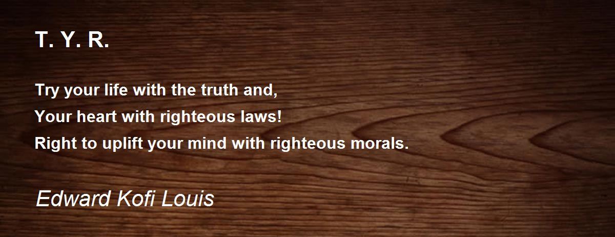 Try your life with the truth and, Your heart with righteous laws! Right to uplift your mind with righteous morals.
