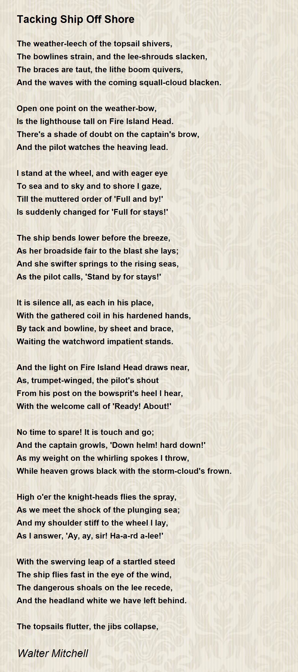 And thunders the order, 'Tacks and sheets!'