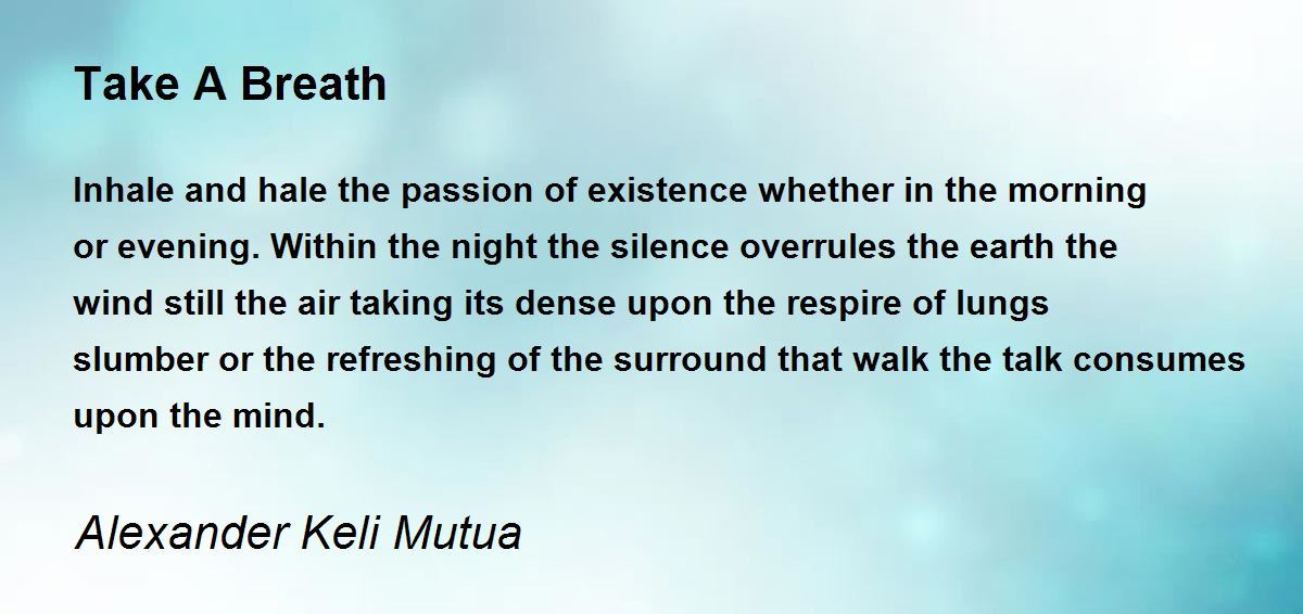 Inhale and hale the passion of existence whether in the morning or evening. Within the night the silence overrules the earth the wind still the air taking its dense upon the respire of lungs slumber or the refreshing of the surround that walk the talk consumes upon the mind.