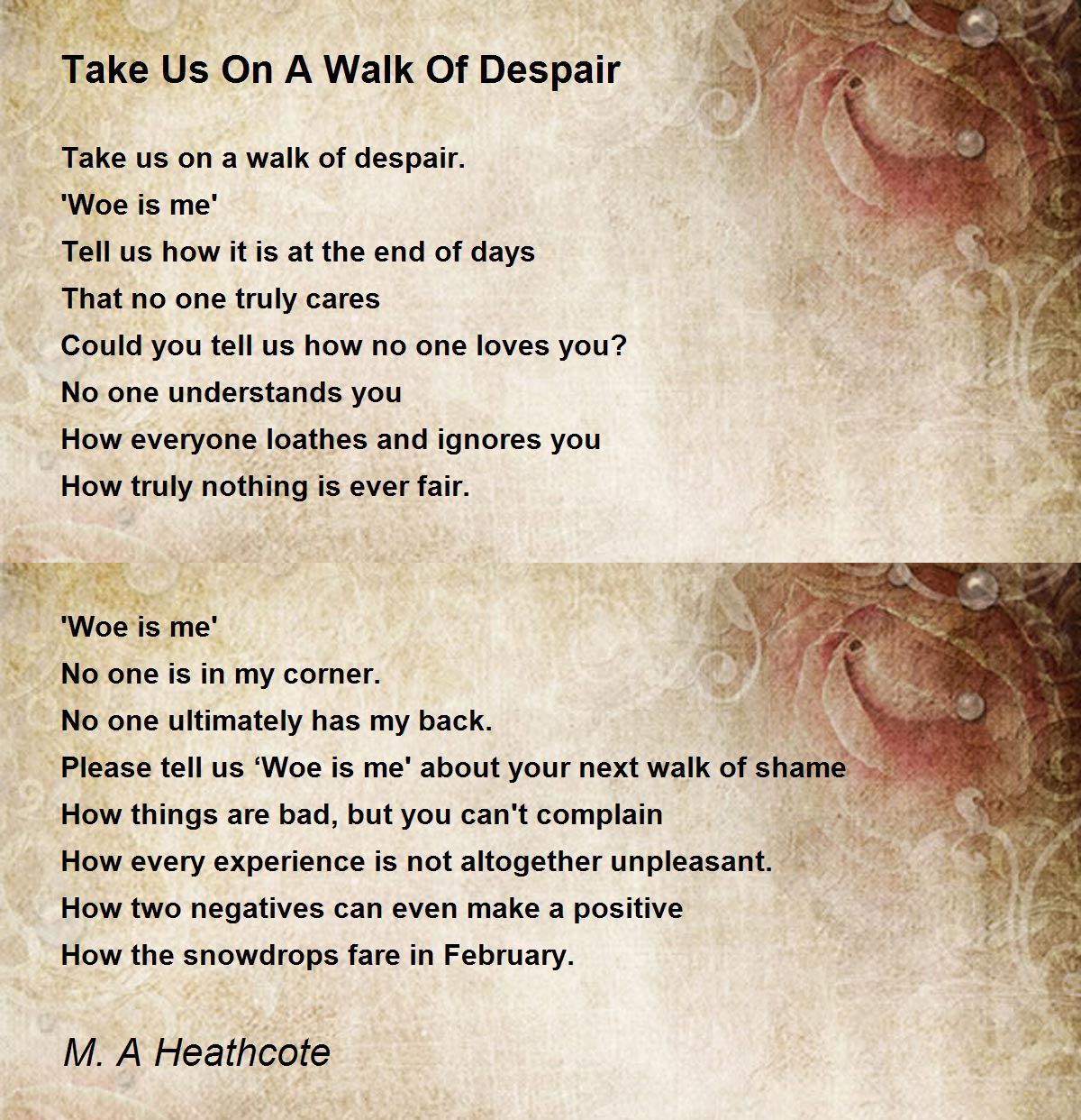 Take us on a walk of despair.