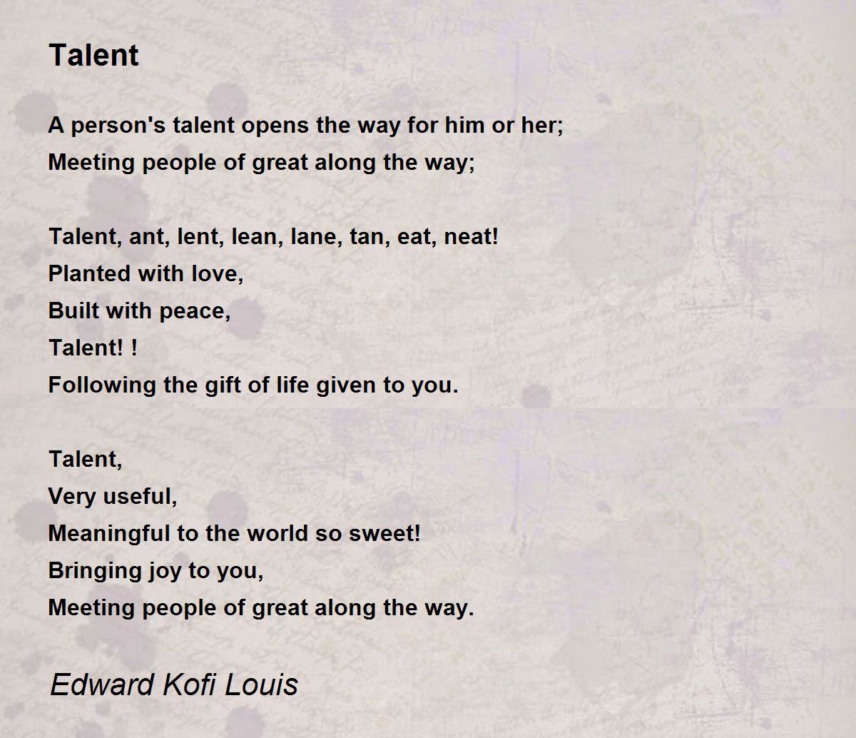 Talent, ant, lent, lean, lane, tan, eat, neat! new definition of talent...nice one 10...