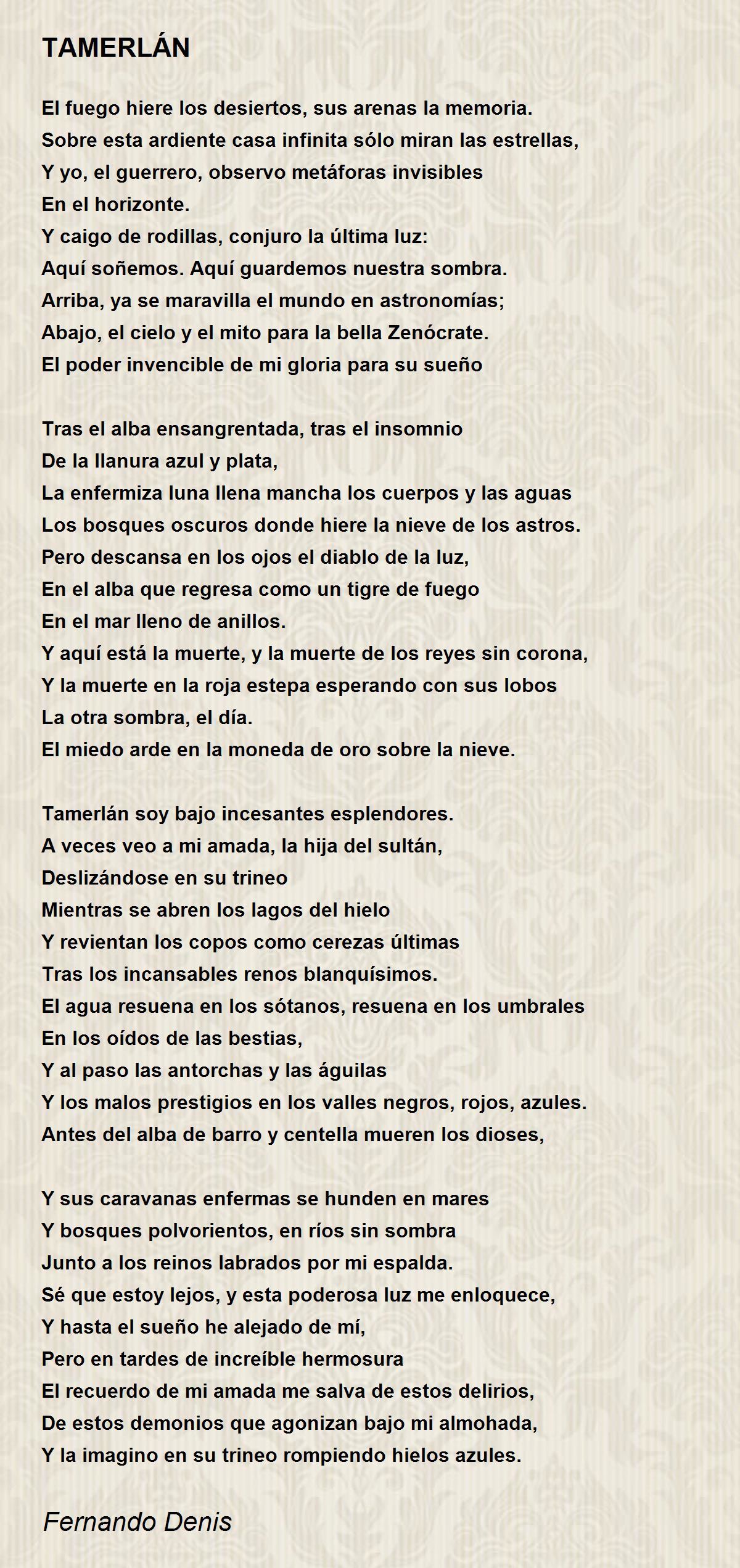 Tamerlán soy bajo incesantes esplendores.