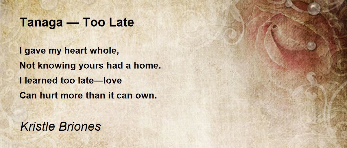 I gave my heart whole, Not knowing yours had a home. I learned too late—love Can hurt more than it can own.