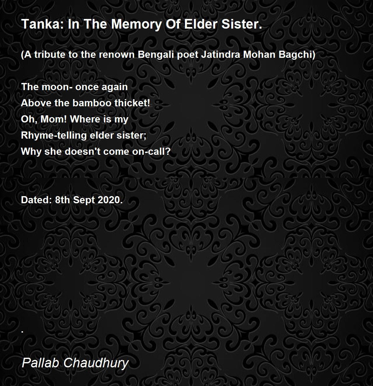 Very sad and sombre. An heartfelt tribute to a sister. It is so heart touching.