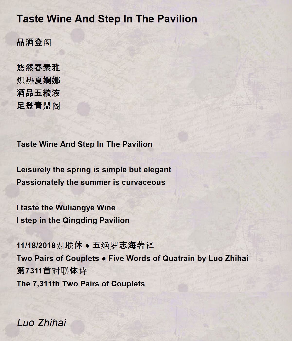 Two Pairs of Couplets ● Five Words of Quatrain by Luo Zhihai