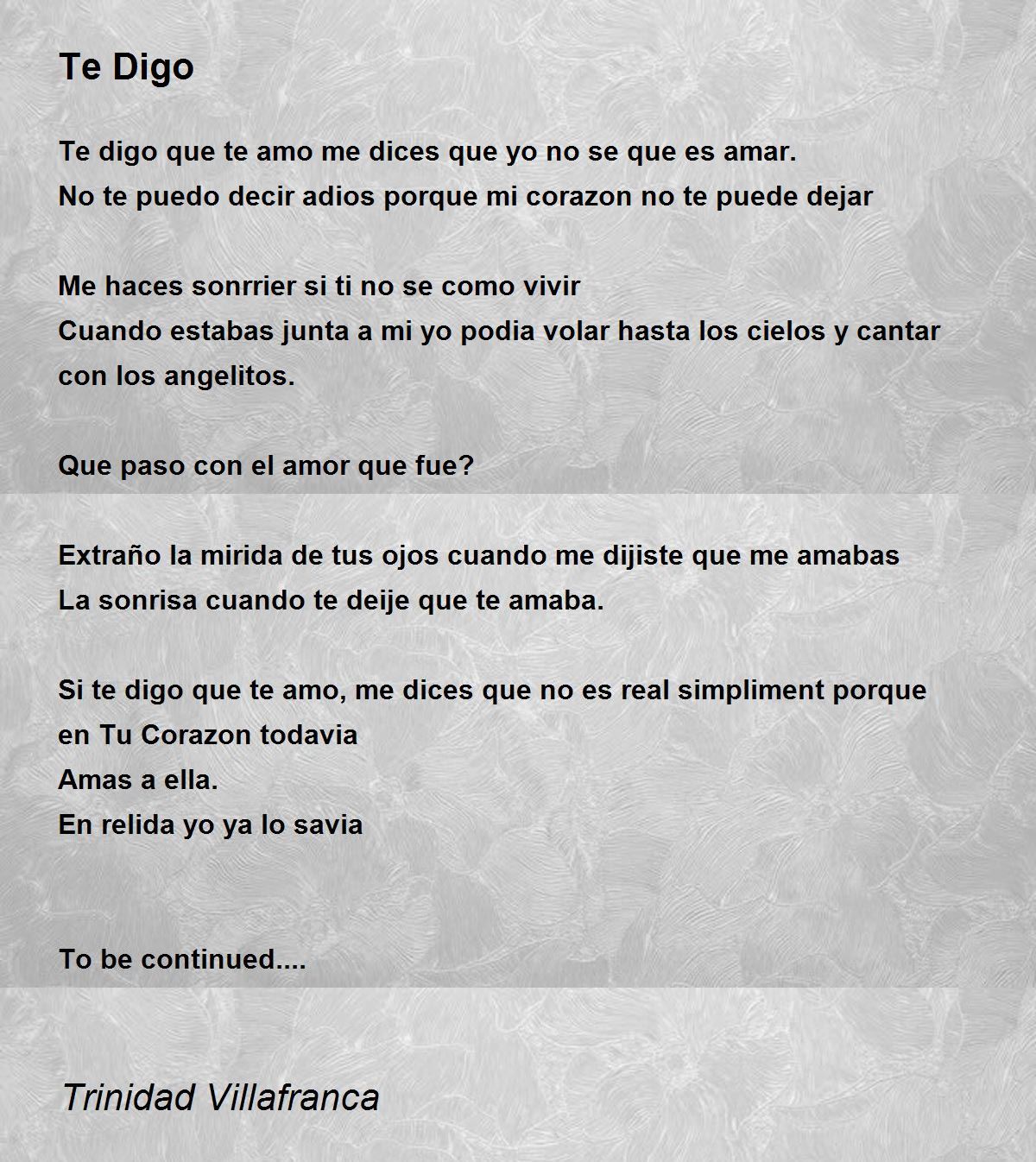 Si te digo que te amo, me dices que no es real simpliment porque en Tu Corazon todavia