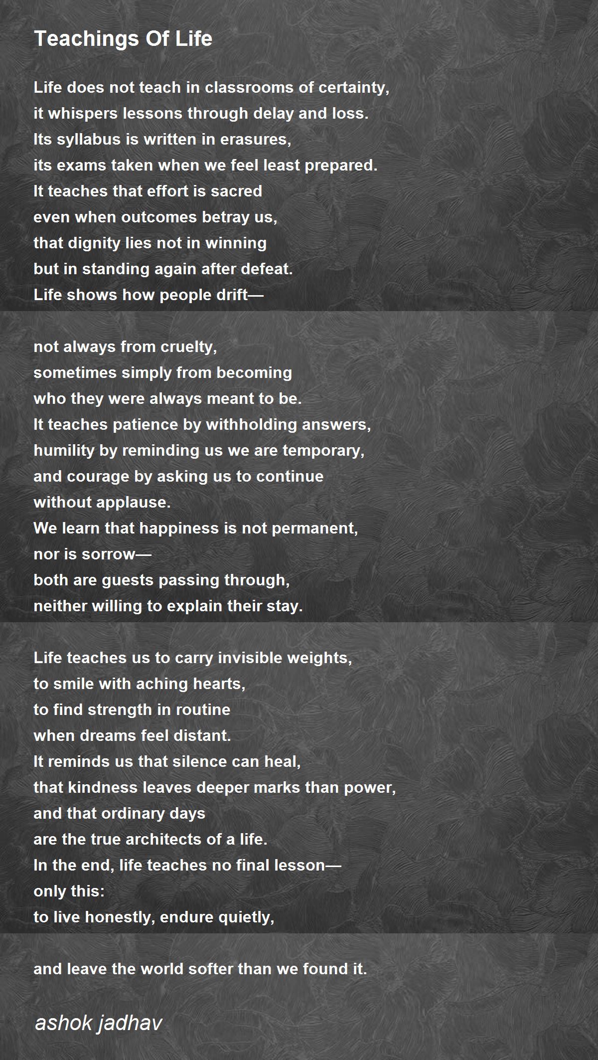 In the end, life teaches no final lesson—