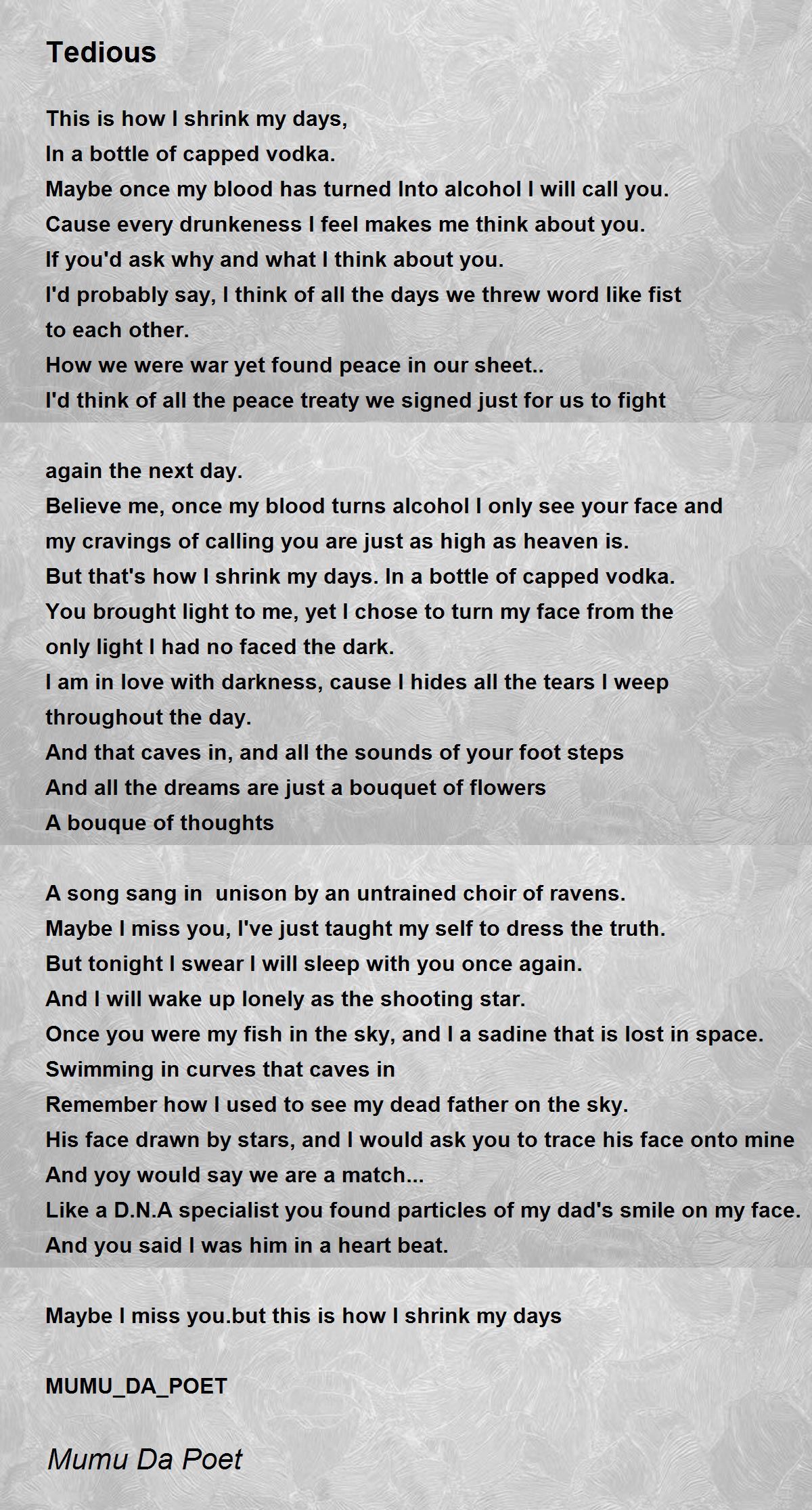 Believe me, once my blood turns alcohol I only see your face and my cravings of calling you are just as high as heaven is.