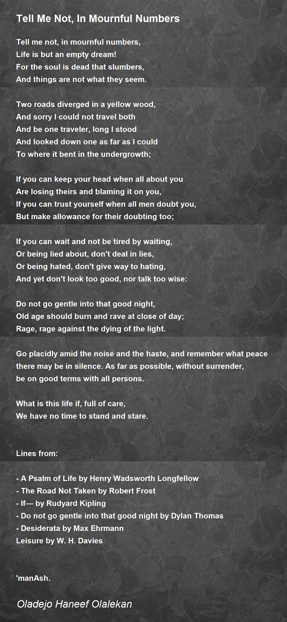 Tell me not, in mournful numbers,
