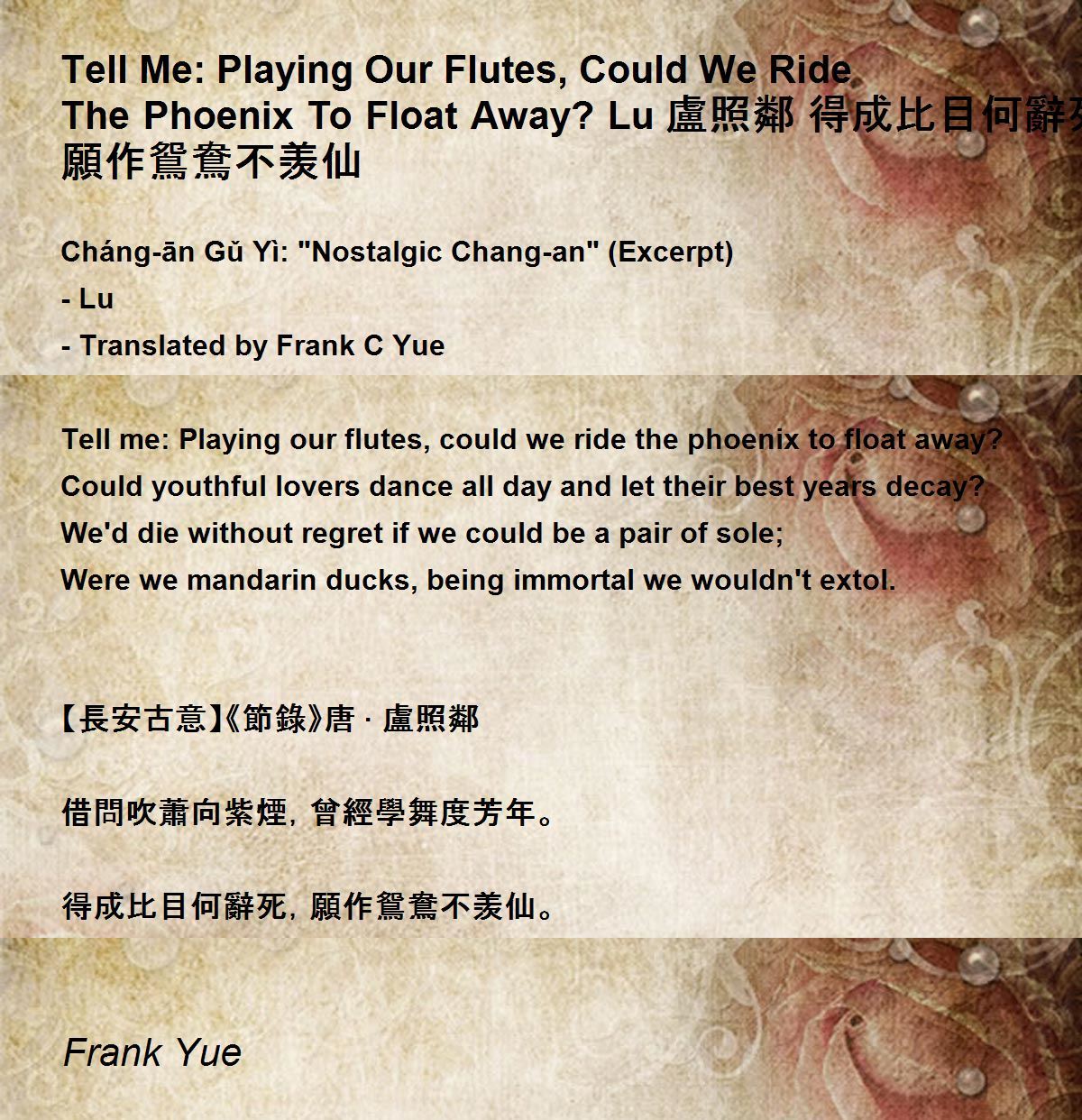 Tell me: Playing our flutes, could we ride the phoenix to float away?