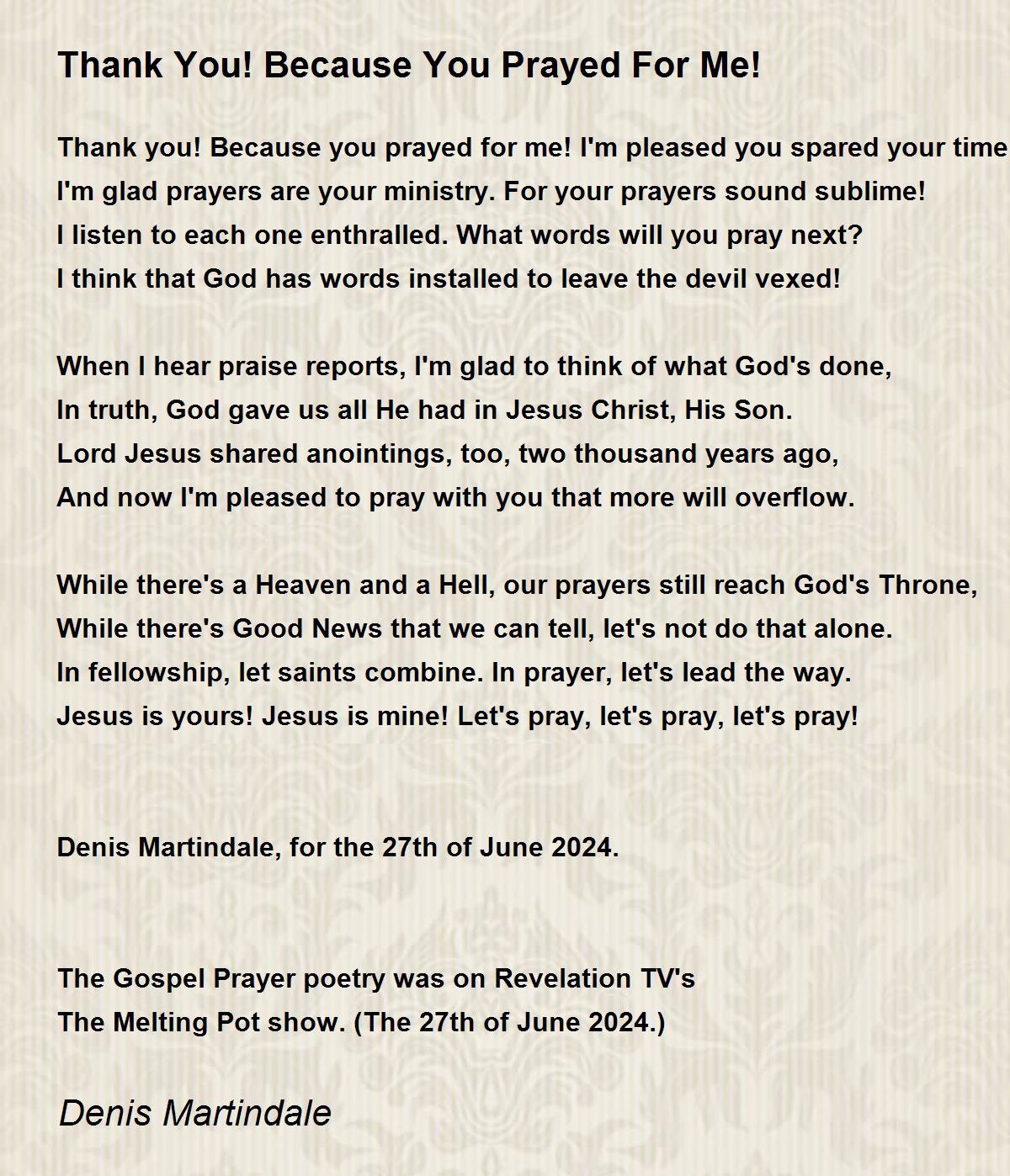 The Gospel Prayer poetry was on Revelation TV's