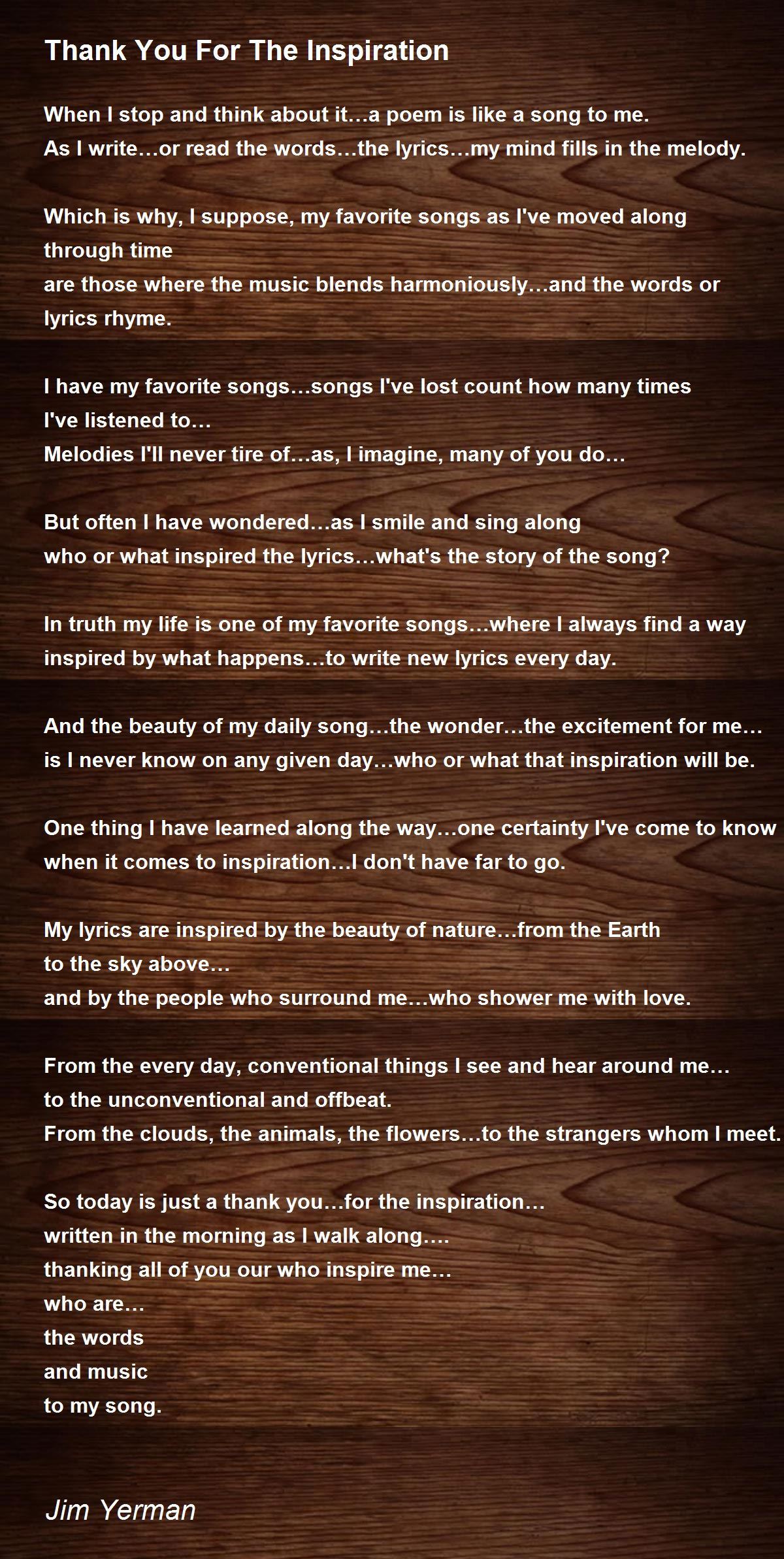 When I stop and think about it…a poem is like a song to me.