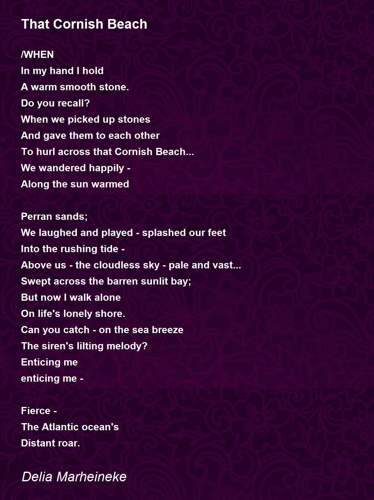 Please PoemHunter could you kindly delete the line space between the eighth and ninth line, and put one instead between the sixth and seventh line, I can't see a way to amend it myself. Best Wishes from Delia.