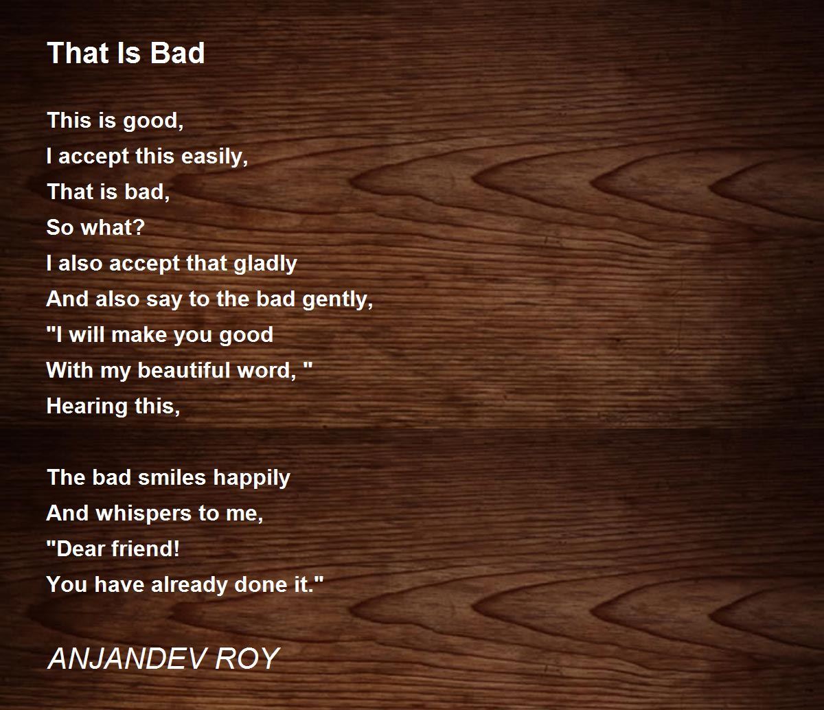 it's generous and magnanimous heart that to accept good and bad together........ bad is not avoidable for every good person by inside cause there is also some lesson to learn in bad and good person learns that through another way to make the bad GOOD