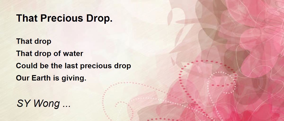 That drop That drop of water Could be the last precious drop Our Earth is giving.