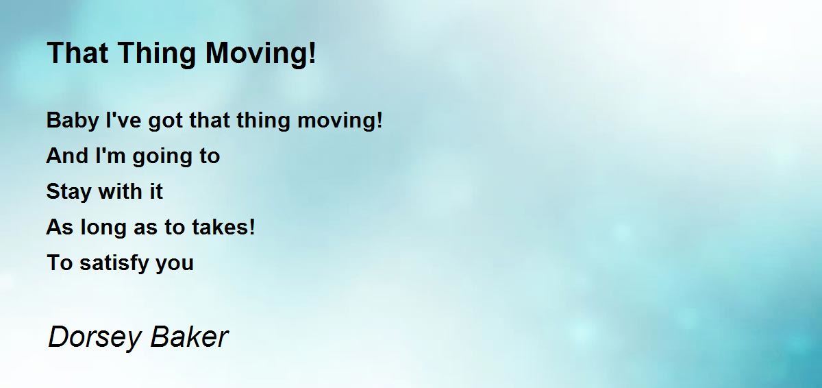 Baby I've got that thing moving! And I'm going to Stay with it As long as to takes! To satisfy you