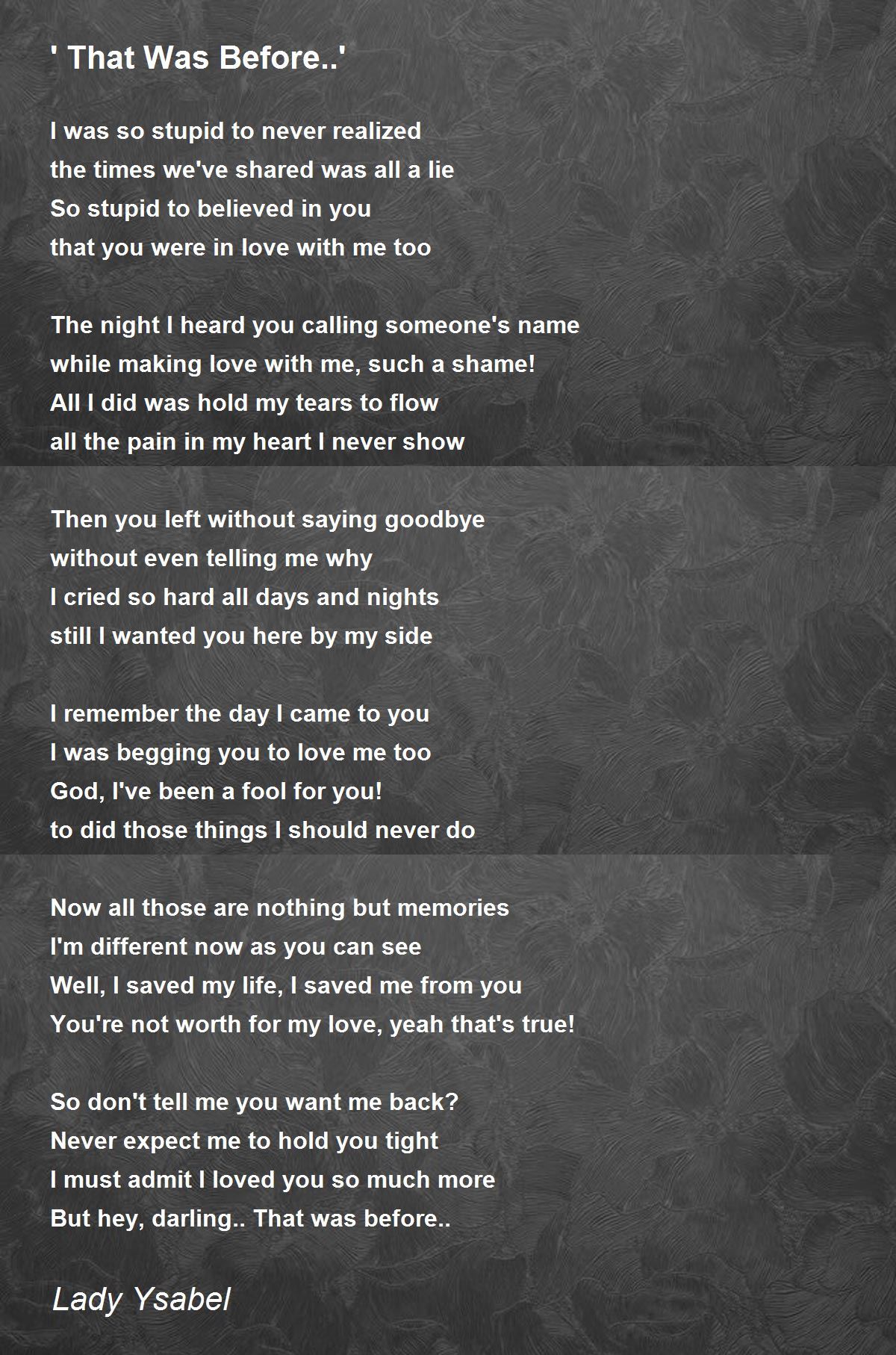 But hey, darling.. That was before..