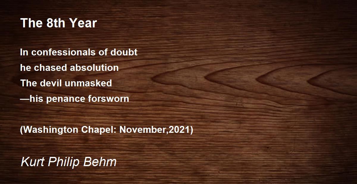 In confessionals of doubt he chased absolution The devil unmasked —his penance forsworn (Washington Chapel: November,2021)