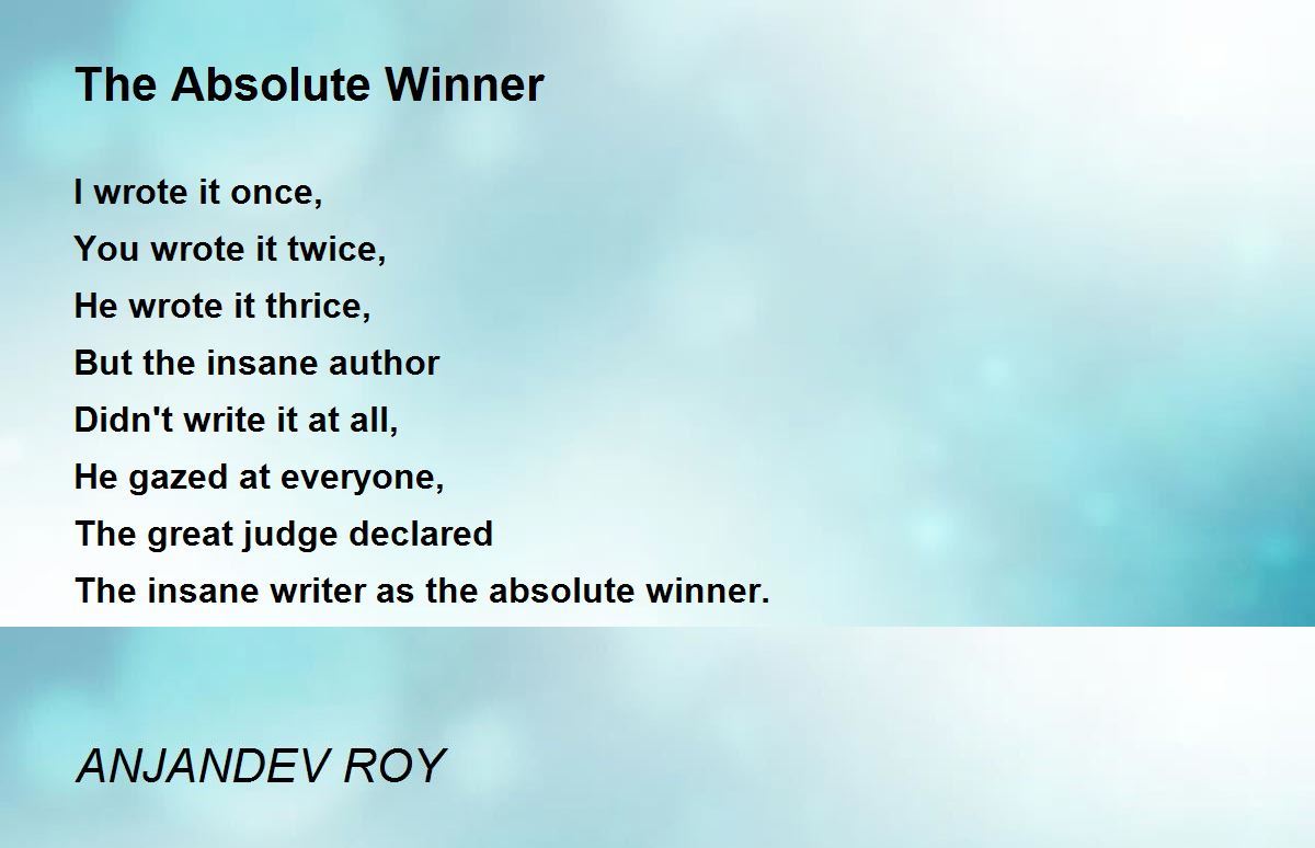 In the present world of incessant strife, to be sane is a crime. Insanity is perfection. Insanity wins… loved the poem